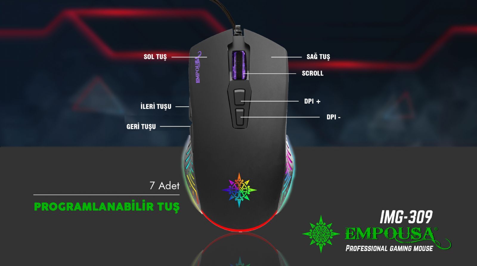 Img-309 Empousa 7200 Dpi Rgb 7 Tuş Makrolu Gaming Oyuncu Mouse