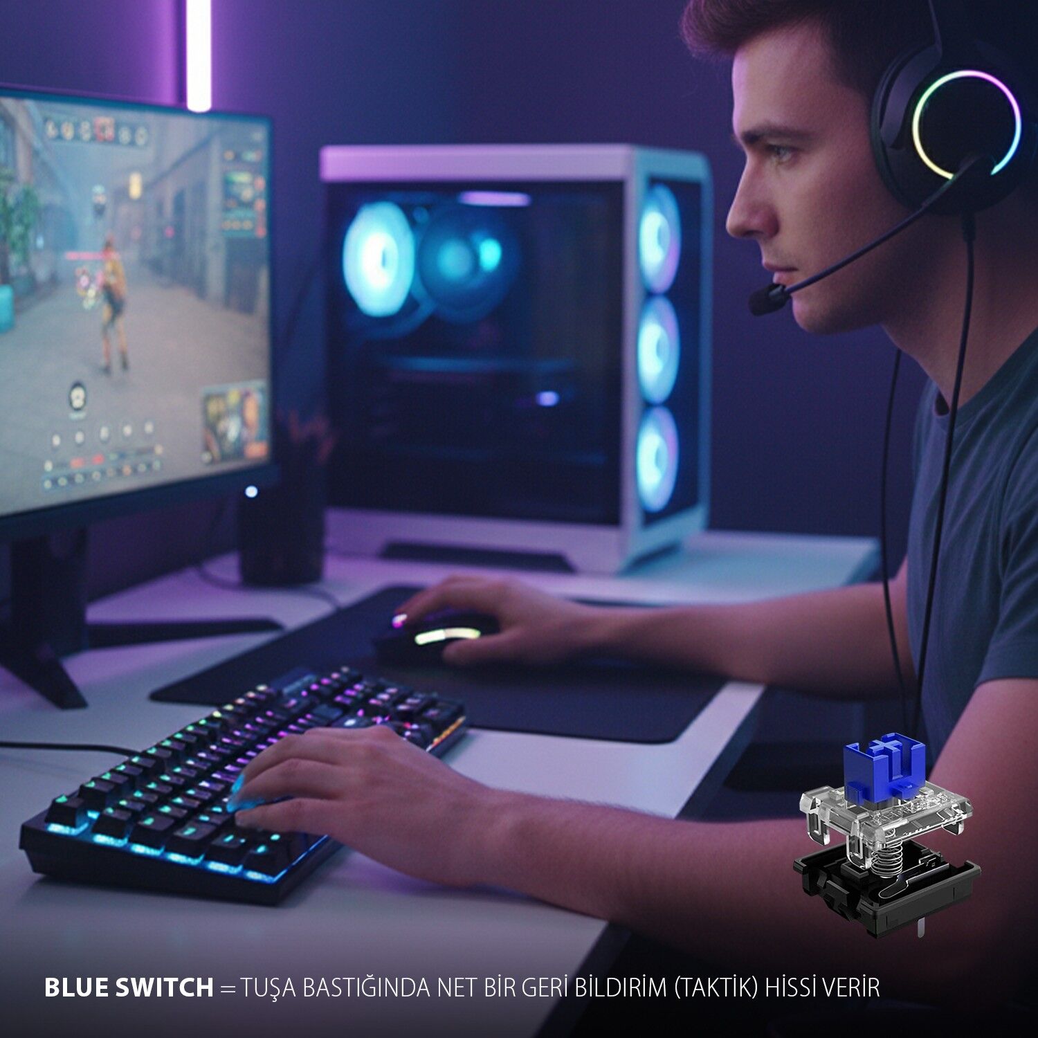 Mavi Mekanik Switch: Net tıklama hissi ve yüksek geri bildirim.