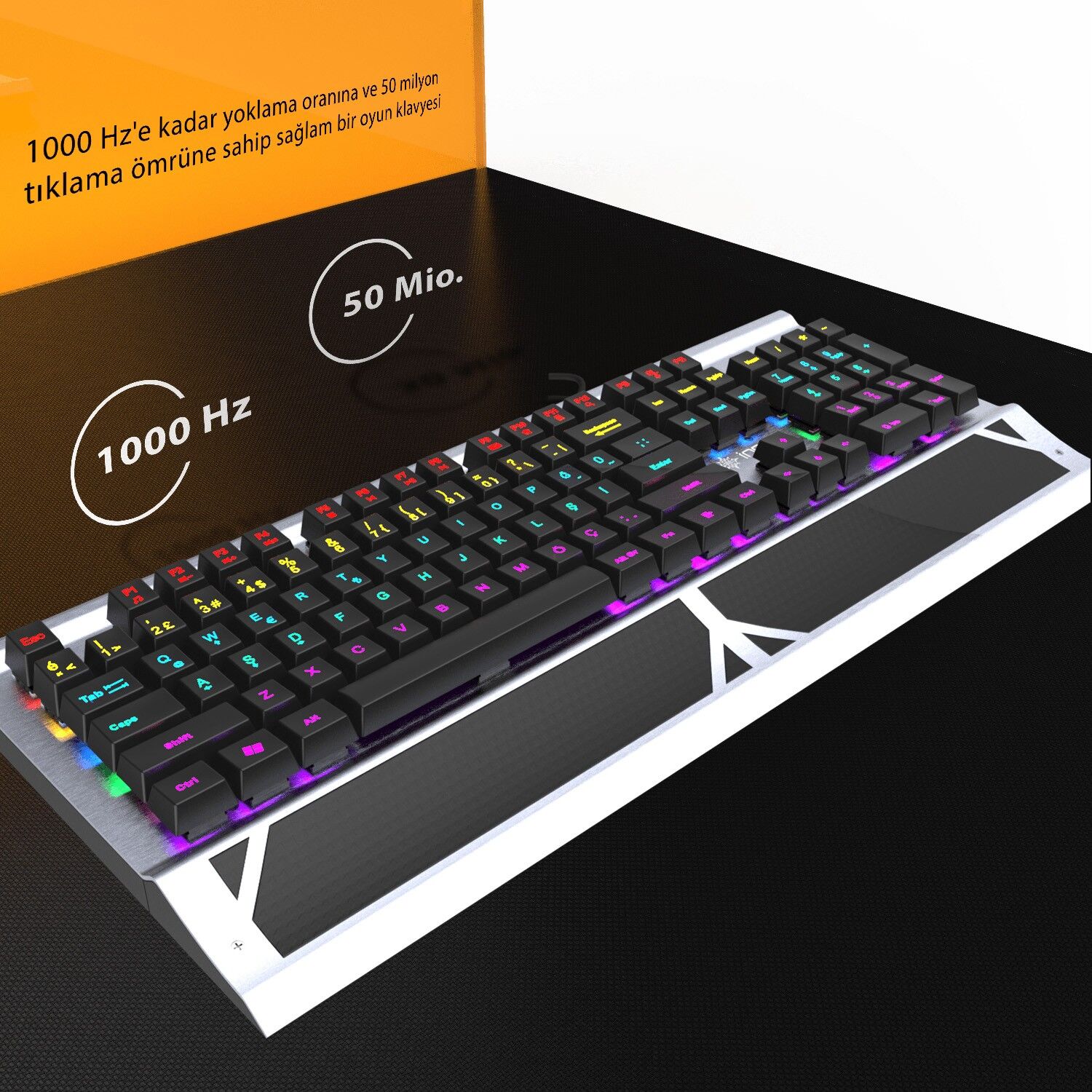 13 Mod LED Aydınlatmalı Blue Switch Mekanik Gaming Klavye – 104 Tuş, Alüminyum Alaşımlı Gövde