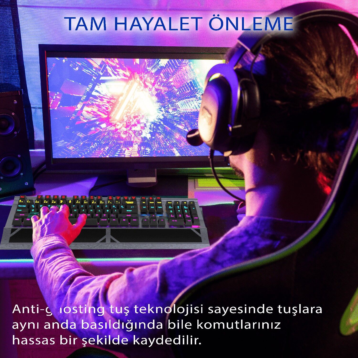 13 farklı LED aydınlatma modu, oyun alanınıza renk katar ve düşük ışıkta kullanım kolaylığı sağlar. Anti-gölgeleme (Anti-Ghosting) özelliği sayesinde aynı anda birden fazla tuşa basıldığında bile tüm komutlar hatasız algılanır.